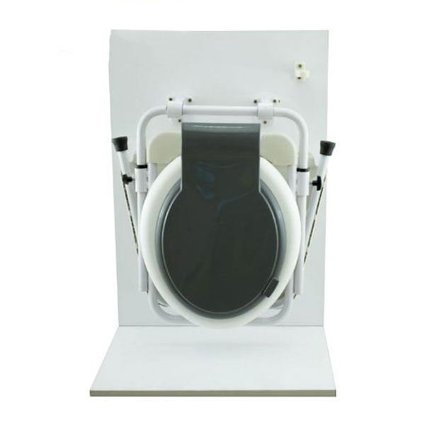 این توالت فرنگی دیواری تاشو ، تمام فلزی بوده با پوشش رنگ کوره ای به دیوار شرقی دستشویی نصب میشود و به راحتی در هنگام نیاز بر روی کاسه توالت باز و پس از استفاده دوباره بر روی دیوار جمع میشود و فضایی اشغال نمیکند تا کسانی که نیاز به آن ندارند بتوانند به راحتی از فضای دستشویی استفاده کنند.