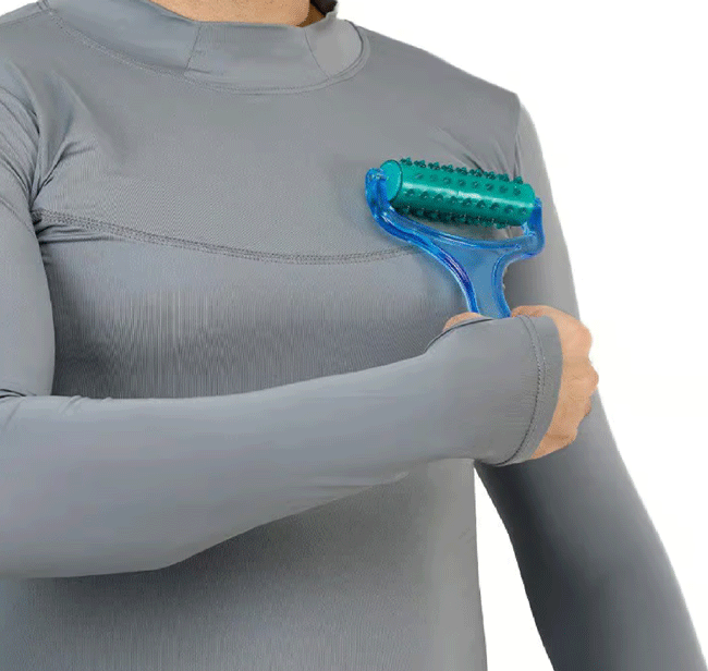 این ماساژور دستی بهصورت رولی است، بهاین صورت که با قراردادن آن روی بدن، بهصورت چرخشی حرکت میکند.