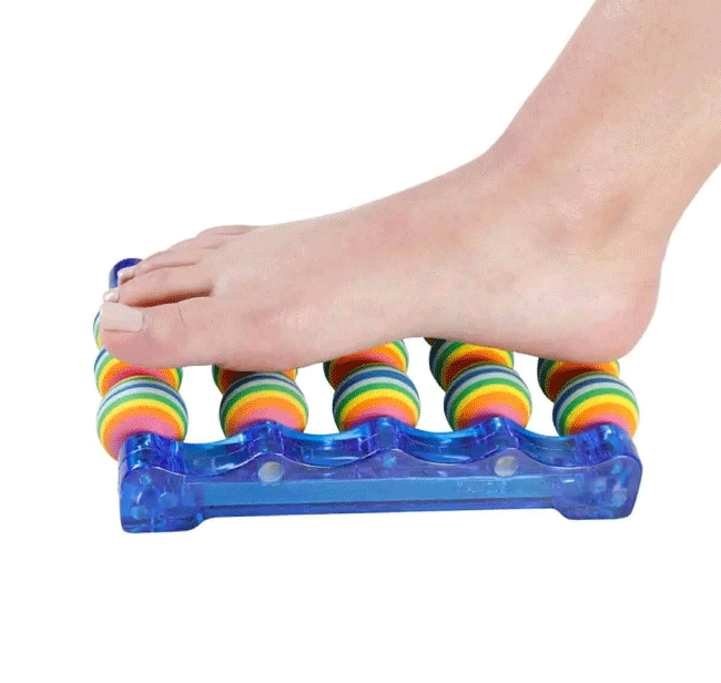 این ماساژور دستی دارای پنج غلطک اسفنجی گردان است که توسط یک بدنه پلاستیکی خوش رنگ نگه داشته شده است. این وسیله مفید و کاربردی روی زمین قرار میگیرد و سپس کف پا را روی غلطک های فومی آن قرار میدهیم.
