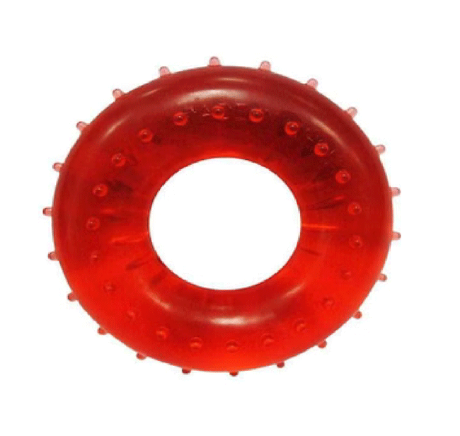 این حلقه با قطر 7 سانتیمتر و ضخامت 1.5 سانمتیمتر با برجستگیهای روی آن میتواند وسیله مناسب برای تمرین دادن انگشتان و مچ دست باشد که برجستگیهای آن با ماساژدادن کف دست جریان خون را افزایش داده که در نتیجه آن خستگی کمتر شده و میتوان تعداد دفعات بیشتری این حرکت را انجام داد.